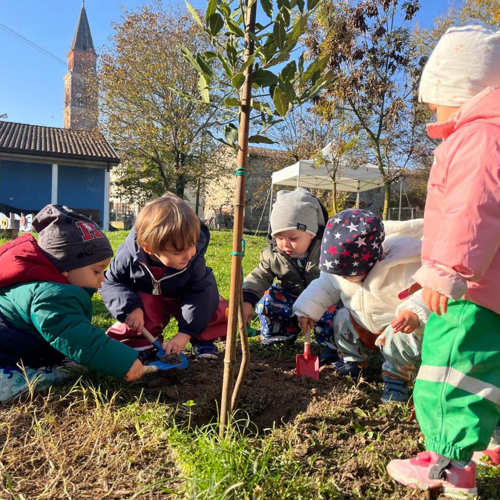 Per concludere la giornata, ci siamo spostati nel giardino della scuola per mettere a dimora un giovane alloro. I bambini hanno partecipato portando piccole manciate di terra e osservando con attenzione ogni passaggio. Il nostro nuovo albero, che abbiamo affettuosamente chiamato “Lauro”, crescerà con loro e diventerà un simbolo di cura e continuità.