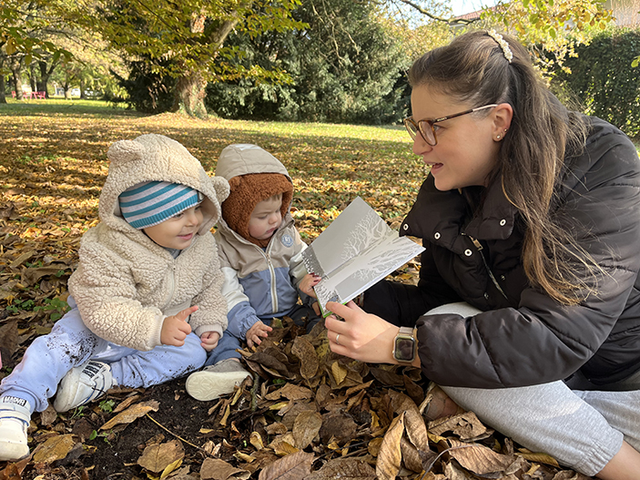 La seconda attività è stata la lettura animata del libro “L’Albero” di Iela Mari, un albo senza parole che permette ai più piccoli di seguire visivamente la trasformazione della natura. La lettura si è svolta all’interno dell’Arboreto “Sandro Pertini”, un luogo ricco di profumi, colori e silenzi, ideale per immergersi completamente nella natura.