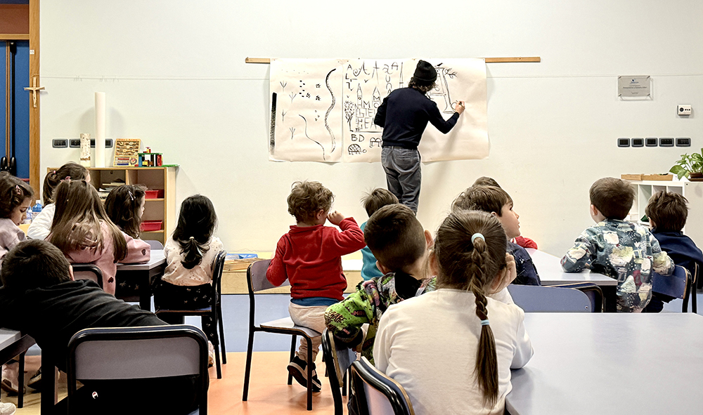 Come in una lezione fatta di gesti e silenzi, Davide Ghiacci ha tracciato segni e lasciato emozioni, che i bambini hanno accolto nello sguardo, trasformandole in ascolto e presenza.