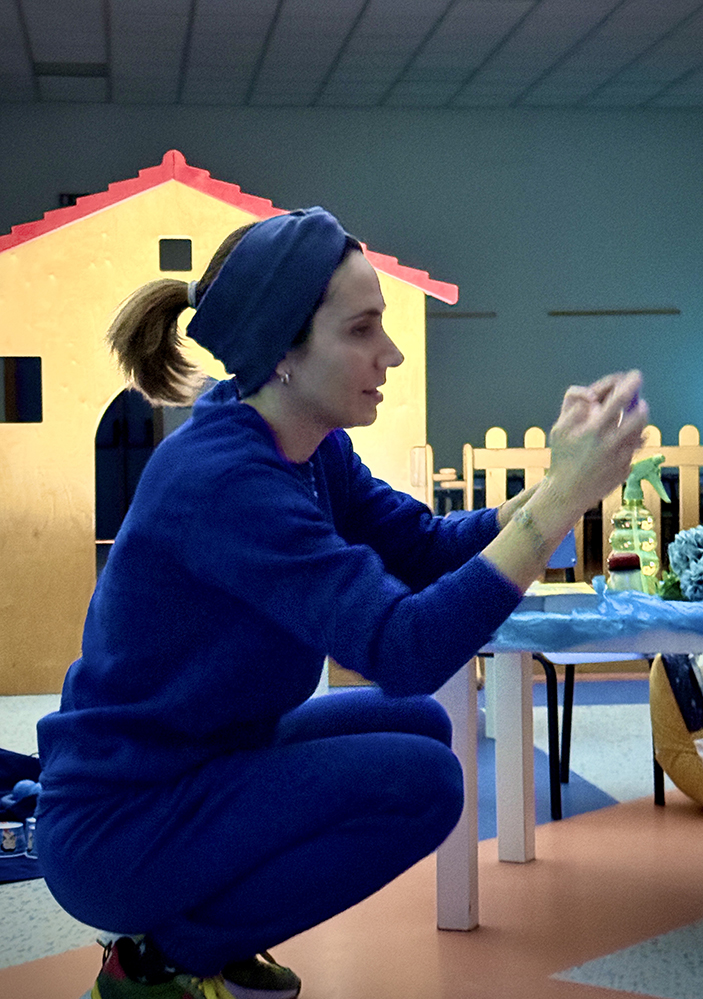 Tra morbidi pupazzi e passi silenziosi, la scuola si trasforma: le aule diventano nidi di parole, i corridoi sentieri incantati, le voci piccoli fuochi accesi nel buio.