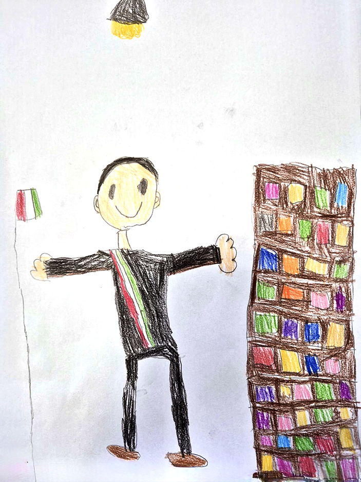 Due disegni che sintetizzano l'emozionante esperienza vissuta ieri con la visita al Municipio di Guastalla