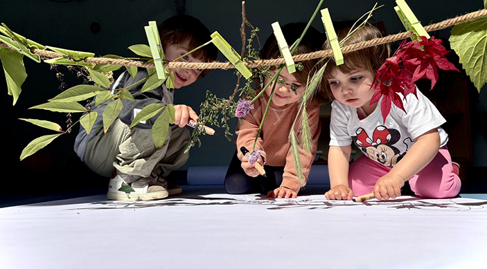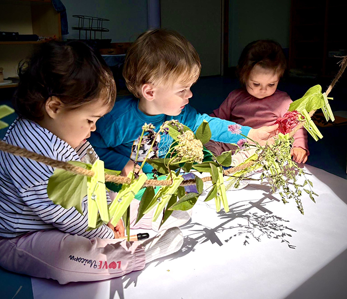 Per dare continuità alle preziose suggestioni offerte dalle bambine e dai bambini della sezione nido piccoli (9–24 mesi), in relazione al percorso progettuale dedicato a luci e ombre, questa mattina è stata proposta un’esperienza botanica.